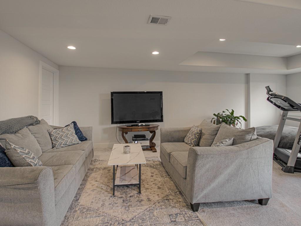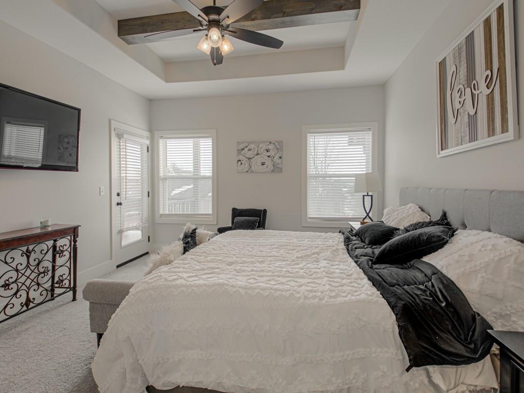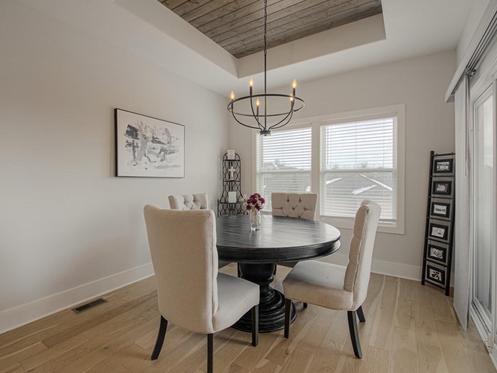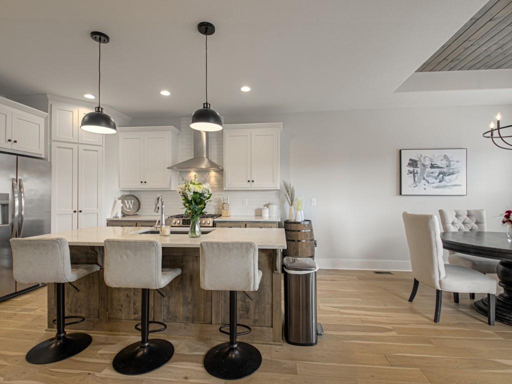 Enjoy easy, maintenance-free living in this custom-built townhouse located in Lakewood’s Chapel Ridge subdivision. Built just three years ago, this one-and-a-half story ranch-style plan offers true main-level living with thoughtful design throughout. The great room features high ceilings, wood floors, and a stone fireplace, opening to a well-appointed kitchen with granite countertops, stainless steel appliances, five-burner gas stove, tiled backsplash, walk-in pantry, and convenient eat-at bar. The main-level dining area walks out to a covered deck with low-maintenance decking, also accessible from the primary suite—perfect for relaxing with minimal upkeep. Main-level laundry adds to the convenience. The main-level primary suite offers a raised ceiling with wood inlay, walk-in closet, and a luxury bath featuring double vanities, added cabinetry for extra storage, and an oversized tiled shower. A finished walkout lower level provides a spacious family room, third bedroom, third full bath, and generous storage, with access to a patio and fenced backyard—ideal for guests or hobbies without daily stairs. Attached two-car garage on the main level. Exterior maintenance, lawn care, and snow removal are included, allowing more time to enjoy Lakewood’s amenities, including two lakes, marinas, swimming pools, tennis courts, and a golf course.